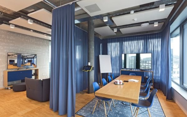 Yes, office curtains provide noise insulation. Thick fabric curtains like cotton, silk, velvet, or blended polyester block sound. However, keep in mind that to achieve full noise insulation, you would need to add some foam acoustic lining behind the curtains.