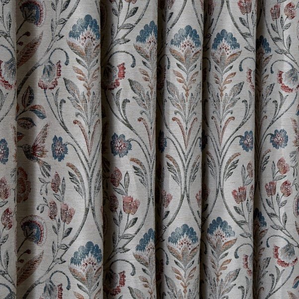 Antoinette jacquard pencil pleat curtains with a detailed Arts and Crafts-inspired design. Heavy polyester fabric with full lining ensures durability and elegant drape. Pairs beautifully with matching cushions for a cohesive, traditional look.