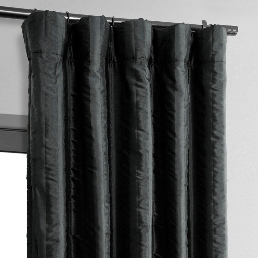 Add luxury to your space with this lustrous two-tone black striped silk curtain crafted from 100% pure silk.