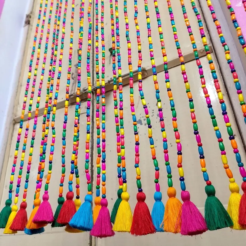 This multicolor wooden bead curtain features high-quality original wood beads and soft cotton tassels for a vibrant boho-inspired look. With 16 strings measuring 72 inches each and 8 mm bead size, it creates a stylish and eye-catching doorway accent. Perfect for adding texture, color, and artistic charm to any interior space.