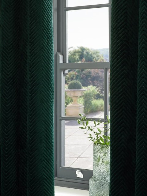 Green Madison Blackout Thermal Eyelet Curtains add luxury to your space with a rich velvet quilted design and elegant drape. The heavyweight thermal lining blocks summer heat and winter draughts, keeping your room comfortable all year round. Finished with stylish silver eyelets, these curtains offer easy hanging and a sophisticated modern look.