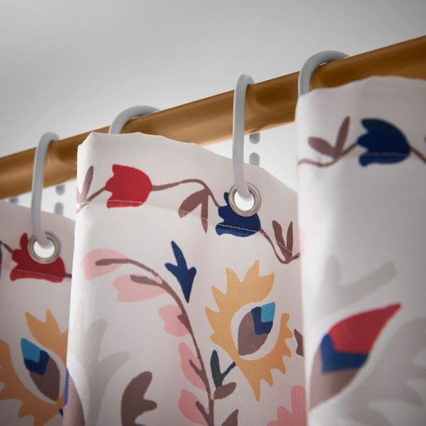 Add a fresh, vibrant look to your bathroom with the Hani Floral Shower Curtain, featuring a bright floral design perfect for boho or global interiors. Made from durable polyester and sized at 180cm square, it fits most standard baths and is easy to machine wash and line dry. OEKO-TEX® certified for safety, it offers both stylish appeal and trusted quality for everyday use.