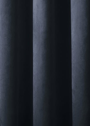 Laurence Llewelyn-Bowen Montrose velvet blackout eyelet curtains in deep navy for a luxurious touch.