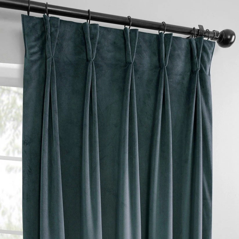 The London Blue Pinch Pleat Heritage Plush Velvet Curtain adds depth and elegance with its rich blue-grey velvet tone.Made from luxurious plush velvet and privacy lined, it provides up to 75% room darkening while enhancing comfort and style. Finished with classic pinch pleats, this curtain is ideal for hanging on rings or a traverse rod for a polished, sophisticated look.