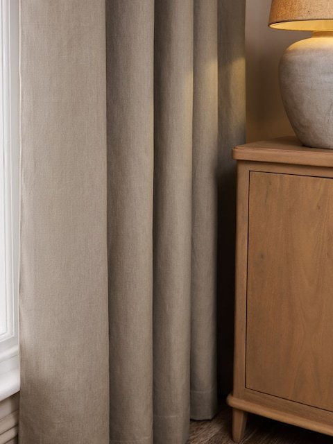 Natural Dark Blackout Cotton Eyelet Curtains offer true blackout performance with thermal insulation for year-round comfort. Crafted from premium cotton with a minimalist plain design, they add a clean and classic touch to your living space. The eyelet header ensures easy hanging and smooth draping, while also helping reduce noise and heat loss.
