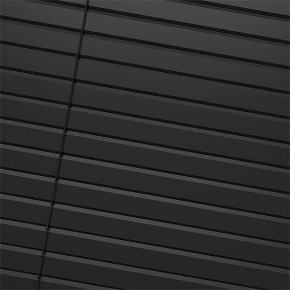 Oscar Matte Charcoal L-Shaped Venetian Blind features sleek aluminium slats in a bold, modern charcoal finish for a clean, refined look. Its L-shaped edged slats provide superior room darkening and privacy, while the lightweight, durable design is easy to wipe clean. Simple wand control and universal brackets make light adjustment and installation effortless.