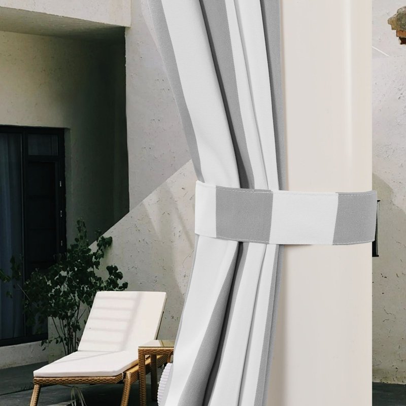 The Cabana Stripe Outdoor Tab Top Panel offers stylish shade and privacy while protecting your space from harmful UV rays and glare. Easy-to-hang hook-and-loop tabs and windproof bottom grommets keep the panel secure even in breezy conditions. Perfect for patios, gazebos, decks, or beach houses, this durable and water-repellent panel adds comfort and outdoor charm.