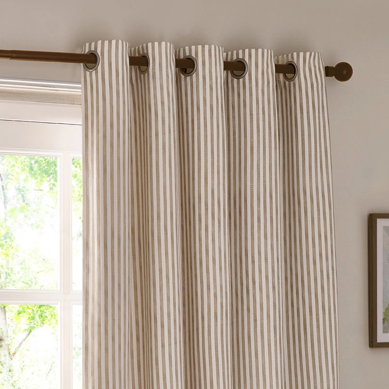 Sumnesh Cotton Grommet Eyelet Curtains are made from 100% cotton, offering a lightweight and effortless drape. The timeless stripe design adds classic style, while the lining provides privacy and reduces light. Easy to hang, these Dubai Curtains bring comfort and a relaxed, inviting feel to any living space.