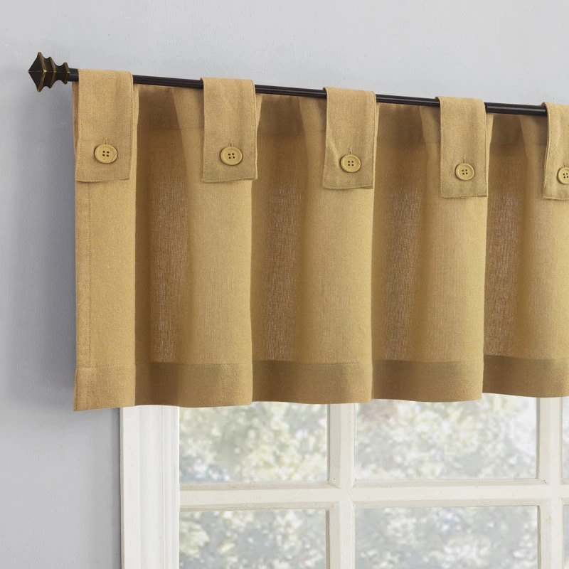 Zaybree Cotton Blend Button Tab Top Cafe Curtains add rustic charm with a soft washed texture and decorative button tabs. The semi-sheer fabric gently filters natural light while maintaining comfortable privacy.